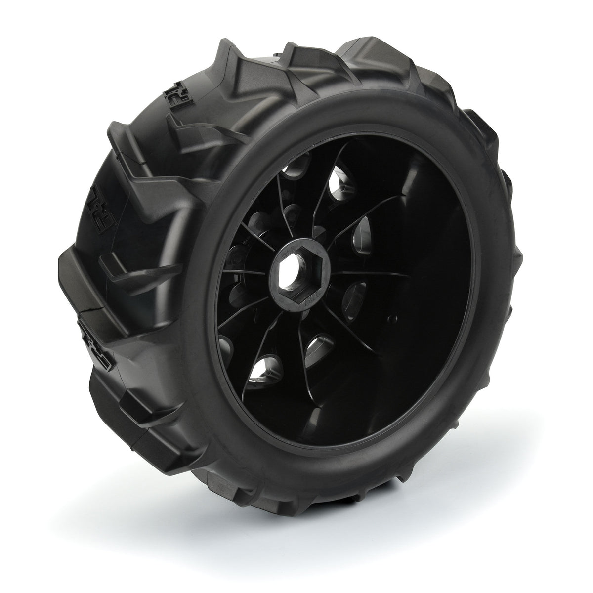PRO1020210 | Dumont Paddle Sand/Snow Tires Mounted on Raid 5.7" Black Wheels (2) for X-MAXX®, KRATON™ 8S & Other Large Scale 24mm Hex Vehicles Front or Rear