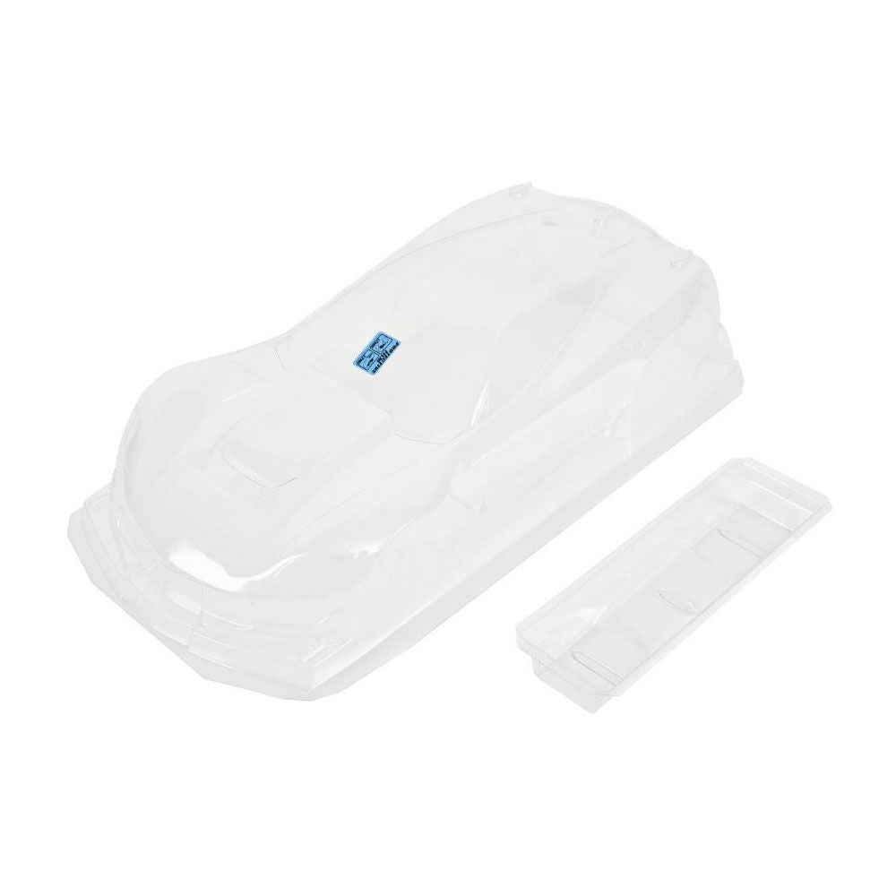 PROTOform brings Corvette Racing's championship heritage to 1/8 GT Class racing with the officially-licensed Corvette™ C7.R race body. From the signature Corvette™ muscular stance and swept-back roofline, to the large front splitter and side vents, every detail of the 1:1 race car is captured to add scale realism to the world of 1/8 GT. The extensive decal sheet lets you deck out your C7.R with Corvette™ branded windshield headers, "Jake" skull hood logo, number plates, and USA flags. Included with the body is an add-on rear wing, secured with three oversized nylon screws and featuring 2 trim-lines and spill-plate sizes: a lower line for sanctioned racing, and an upper line for low-grip club racing.