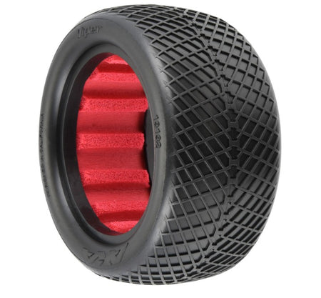 AKA's 1/10 Viper Rear 2.2" Buggy tires feature a "bar-type" tread pattern designed to break in quickly and provide unparalleled traction on hard-packed or blue groove, indoor and outdoor tracks. Designed in conjunction with RC legend, Gil Losi Jr., the Viper tires boast an updated carcass and optimized tread height and thickness for maximum performance.