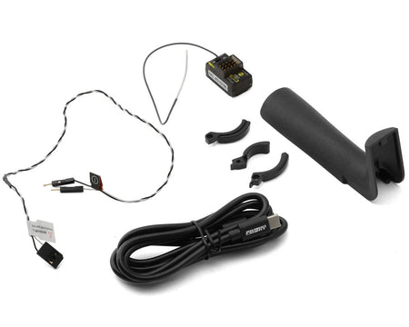 The NB4+ radio system employs a 3450-amp large-capacity battery that easily copes with RC marathons. Equipped with a standard high-quality 18650 battery, the NB4+ features a "Quick-Release" internal battery design for convenient ease of access. This transmitter includes the compact and reliable 2.4GHz Four-Channel FGr4B Receiver. This receiver was designed for use with FlySky's advanced AFHDS3 (Automatic Frequency Hopping Digital System 3) protocol to ensure stable and interference-free communication. It is equipped with a failsafe function that allows users to set predefined positions for the controls in case of signal loss, enhancing safety during operation.