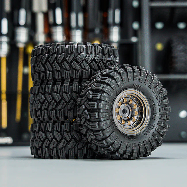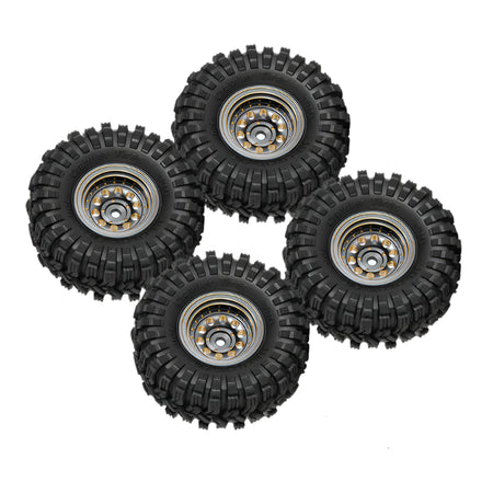 INJORA Black Coating Brass 1.0" Beadlock Wheel Tires Set for 1/24 1/18 RC Crawler Car Axial SCX24 AX24 TRX4M FCX24