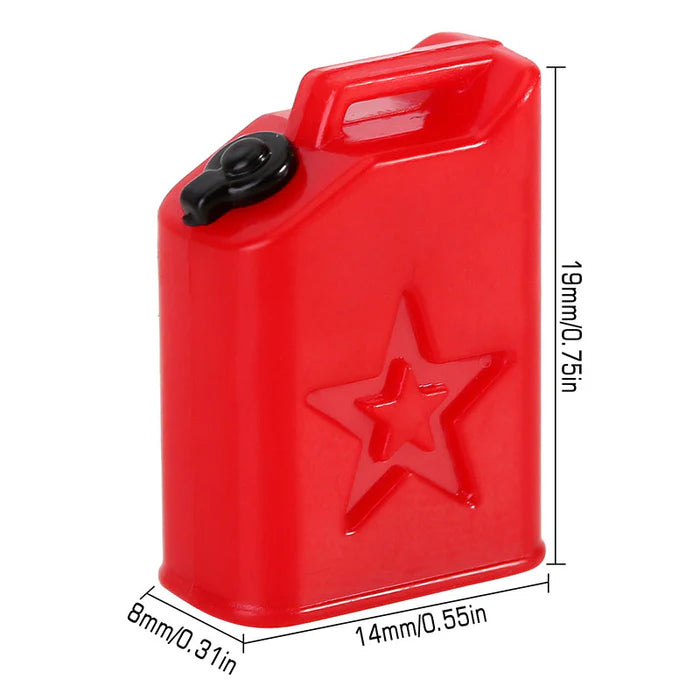 - 1/24 Scale fuel tank, also known as Jerry Cans, are a great way to add some livery to your rig with little fuss. Jerry Cans come pre-painted in red with silver caps for excellent detail.