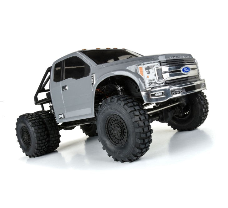 This is a 2017 Ford® F-250 Super Duty Cab-Only Clear Body for 12.3” Crawlers. Blue Oval fans rejoice! Pro-Line brings some American HD truck looks to the 1/10 Crawler scene, sure to give your SCX10™ a unique look out on the trails. It's molded in crystal clear, durable polycarbonate and includes a detailed decal sheet and window masks.