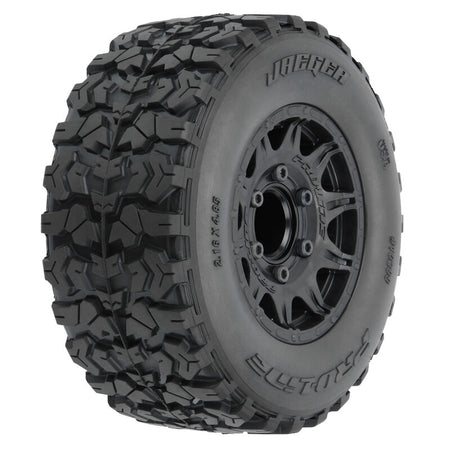 PRO1029910 | Jaeger HP 2.8" All Terrain BELTED Truck Tires Mounted on Raid Black 6x30 Removable (12mm & 14mm) Hex Wheels (2) for Vorteks™, Big Rock™ 3S, Granite™ 3S, Stampede® 2WD & 4WD Front and Rear
