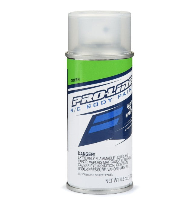 This is Pro-Line RC Body Spray Paint - Green specially formulated for Polycarbonate. Pro-Line's Team of Innovators have painted literally thousands of RC car bodies over the years and now offers an easy way to customize your clear body with R/C Body Spray Paints specially formulated to help you achieve the best paint scheme.