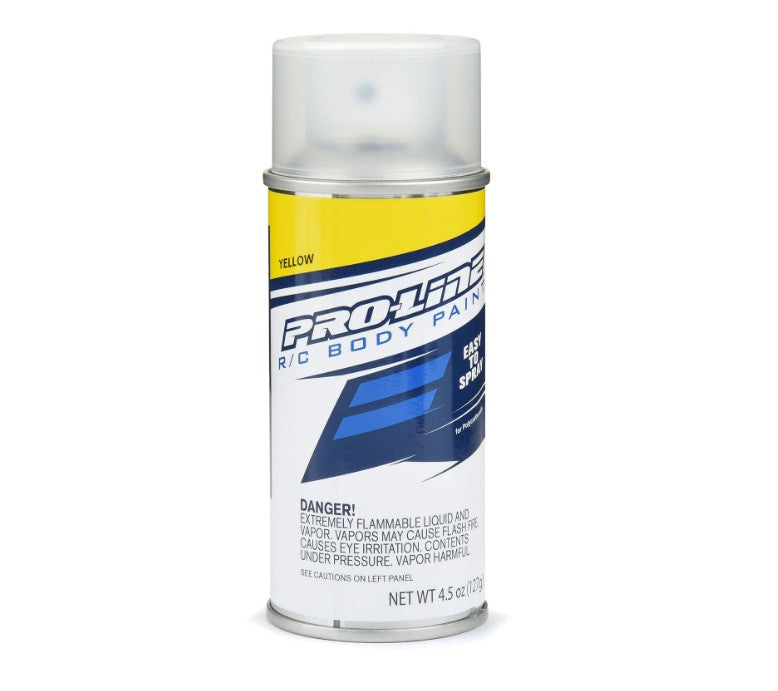 This is Pro-Line RC Body Spray Paint - Yellow specially formulated for Polycarbonate. Pro-Line's Team of Innovators have painted literally thousands of RC car bodies over the years and now offers an easy way to customize your clear body with R/C Body Spray Paints specially formulated to help you achieve the best paint scheme.
