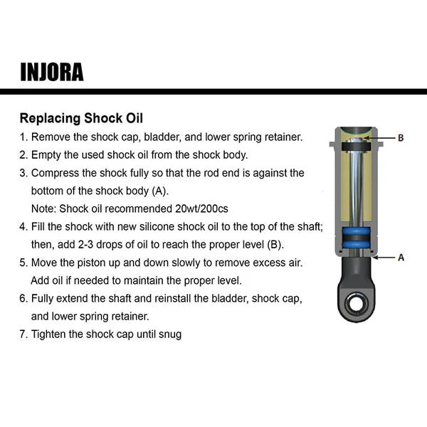 Recommended shock oil weight: 20-40wt